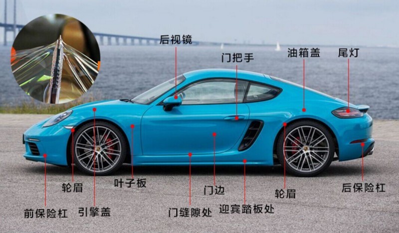 车身改色膜、透明膜、灯膜、内饰膜、太阳膜等.